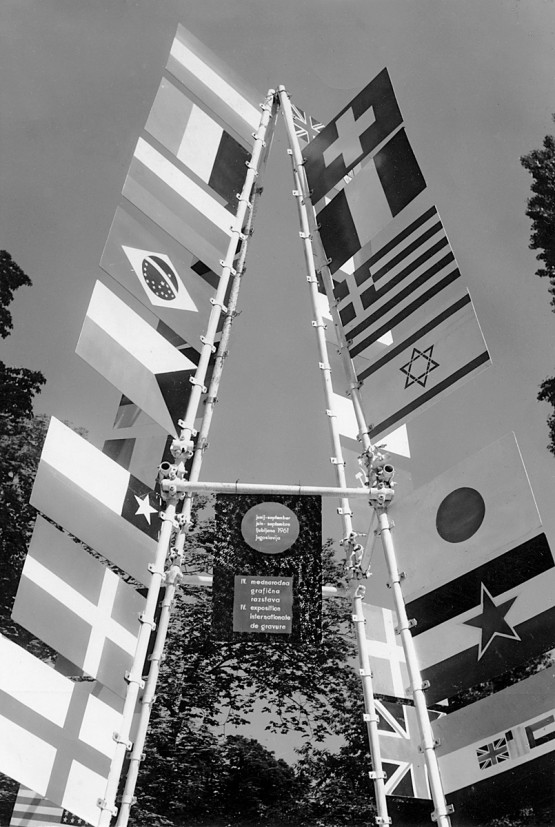 Exterior installation, 4th International Exhibition of Graphic Arts, 1961, Moderna galerija, Ljubljana.