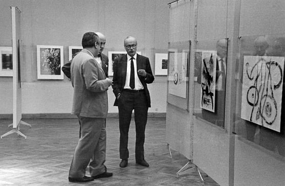 Installation view with the international jury, 5th International Exhibition of Graphic Arts, Moderna galerija, Ljubljana, 1965.