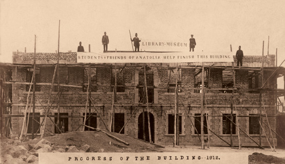 Construction of the library-museum building, Anatolia College, 1912. United Church of Christ (UCC), American Research Institute in Turkey (ARIT), SALT Research.