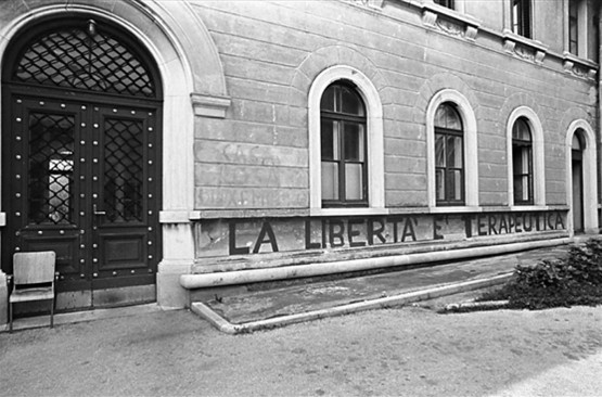 Translation of the title: "Freedom is therapeutic". The graffiti was written by Ugo Guarino at the former psycihatric hospital Opp di San Giovanni, Trieste. The dismantling of psychiatric hospitals was proposed by Italian psychiatrist Franco Basaglia, a pioneer of the modern concept of mental health.